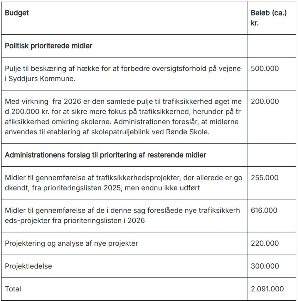 Beslutningen er en del af en beslutning om fordeling af lidt over 2 mio. kr. til trafiksikkerhed i 2026. Projektet i Hornslet er en del af de 616.000 kr. afsat til projekter fra “Prioriteringslisten”.